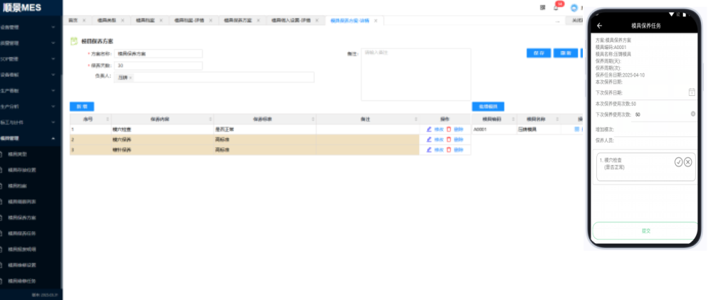 顺景MES系统实现模具全生命周期数字化管理,主要功能包括: