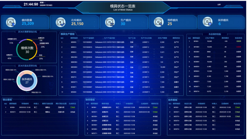 1状态看板:实时显示模具位置/状态/使用次数等关键指标