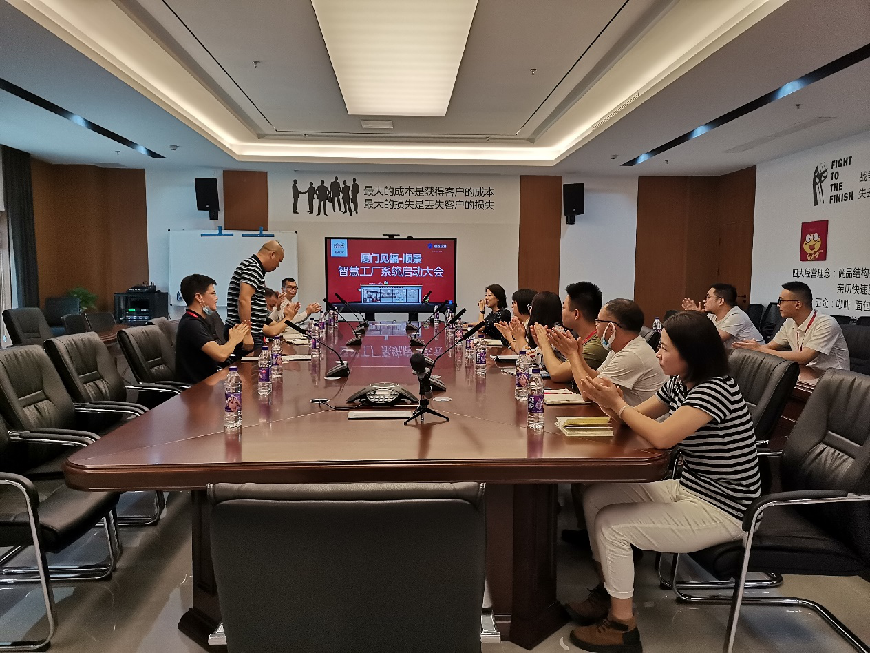 见福董事长也作了总结发言,预祝项目成功上线。副董指出:“细节决定成败,相信顺景20年制造业的智能智造系统实施的经验,双方互相配合一定能够成功上线”。杨总经理也表示“全力支持智能智造系统上线并同时要求各个部门人员按计划、不打折扣执行,学习系统作业和管理规范”。