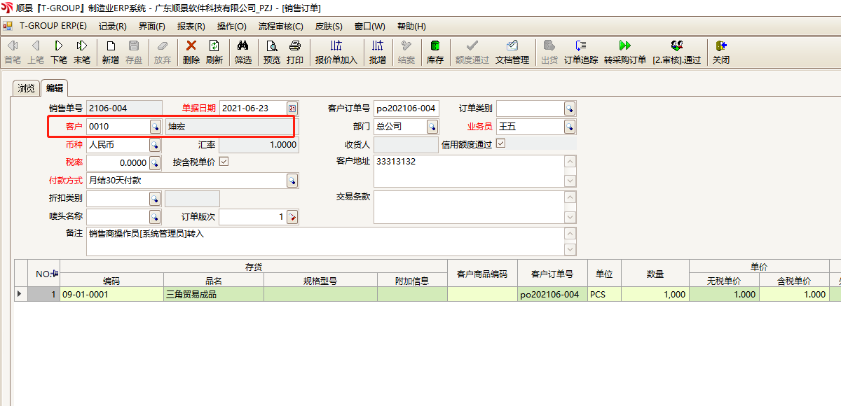 三个公司相互之间下单的问题,顺景ERP小组+创坤弘ERP小组讨论后决定,使用顺景ERP内三角贸易模块,就可以是三个公司可以在系统内进行下单运作,并且相互单据可以进行下推关联。