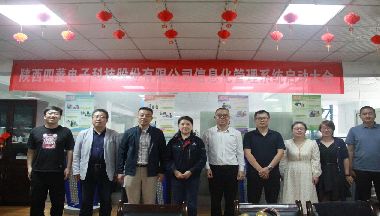 2022年4月25日,陕西四菱电子科技股份有限公司信息化会议启动大会正式召开,公司骨干同仁30多人有幸参与见证这一时刻,顺景软件项目总监李总做了项目部署和上线动员,西安电子科技大学智能制造研究院院长等专家一起参与了启动大会,并给予了四菱电子信息化系统中肯的意见建议,四菱电子项目总监毕总、总经理马总都做了项目指示讲话,大家热情高涨,情绪饱满,共同见证这一战略时刻。未来的信息化项目调研、蓝图设计正有序展开。